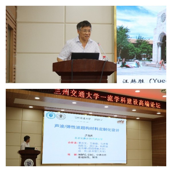 汪越胜围绕低频减振降噪科学问题,作了题为《声波/弹性波超构材料定制化设计》的学术报告。轨道交通低频减振降噪技术研究团队全体成员、数理学院和土木工程其他相关师生等50余人聆听了报告。