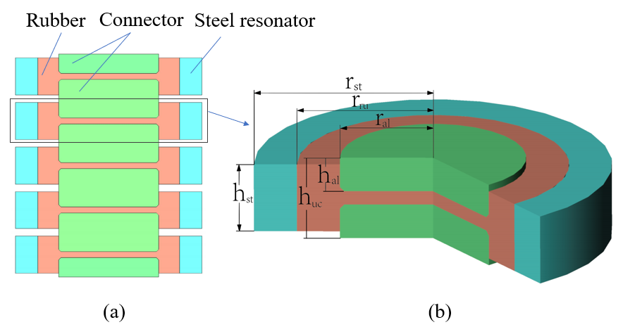 图1 局域共振型声子晶体隔振器:(a)隔振器截面图和(b)单胞剖面结构